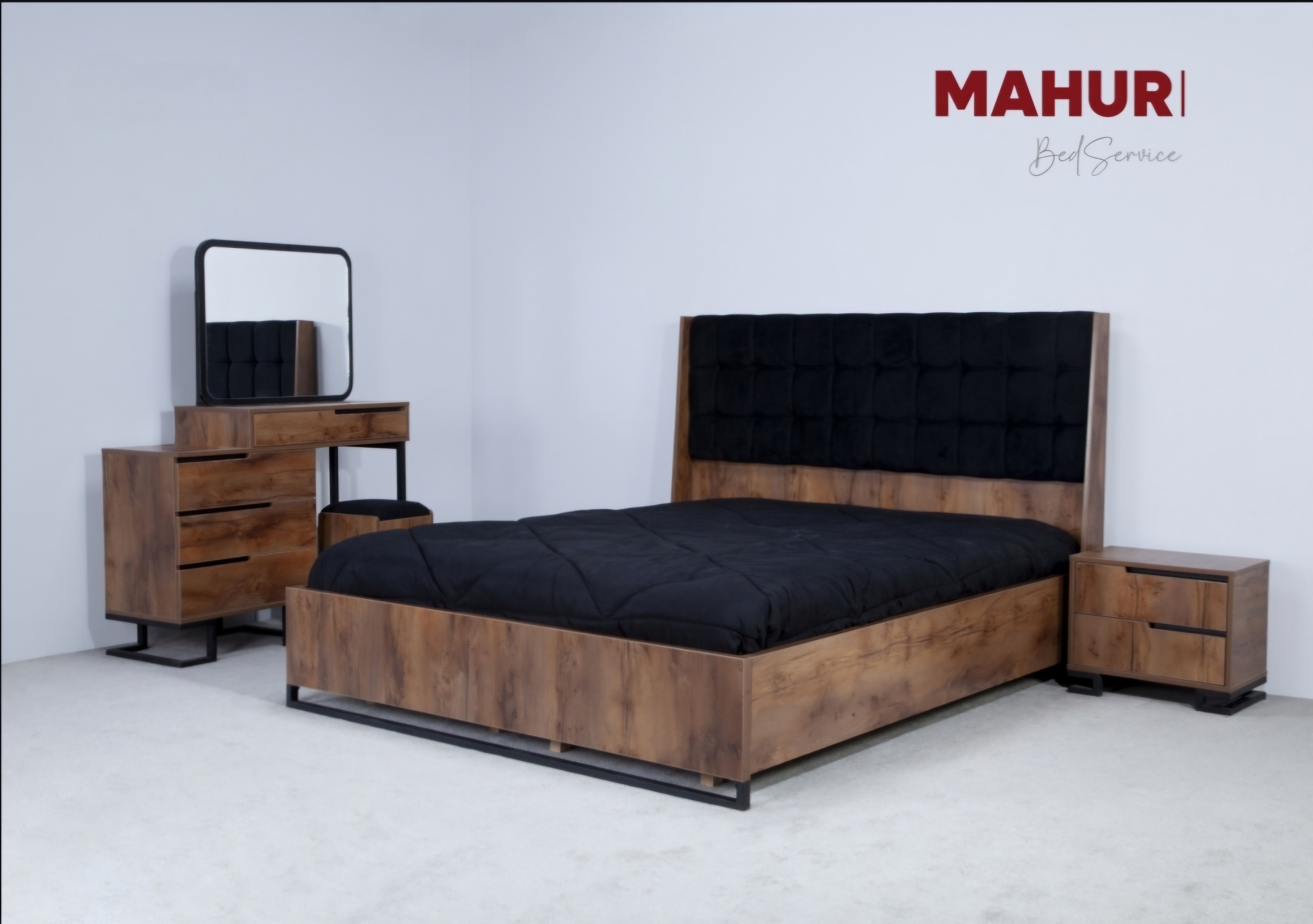تمام ام دی اف MDF ساخته شده از بهترین مواد اولیه پایه فلزی طراحی جدید و به روز بهترین و مرغوب ترین اتصالات سرویس شامل : تخت ، میز آرایش ، یک عدد پاتختی