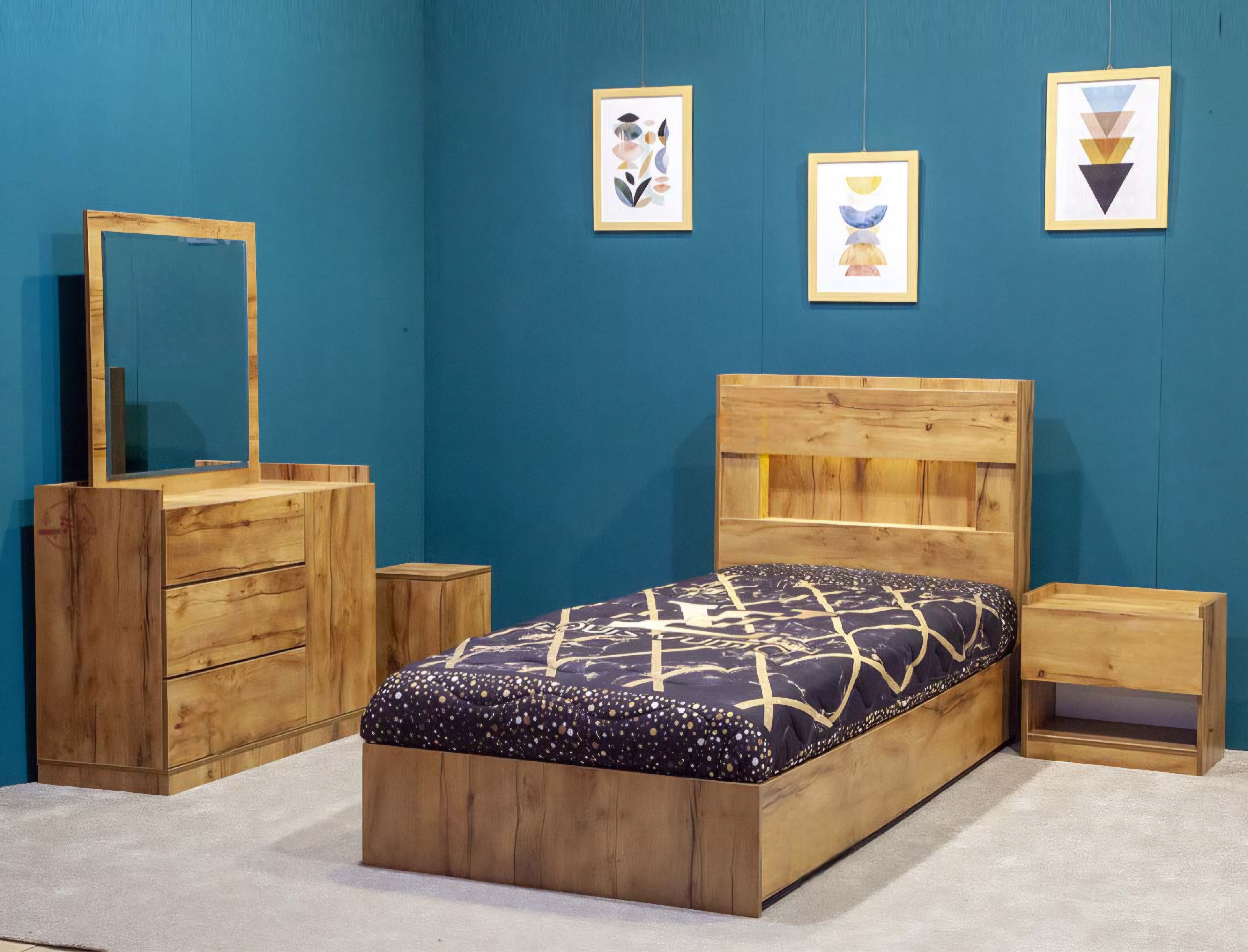 ساخته شده از بهترین مواد اولیه تمام ام دی اف هالوژن دار طراحی منحصر بفرد مینیمال سرویس شامل: تخت ، میز آرایش ، یک عدد پاتختی